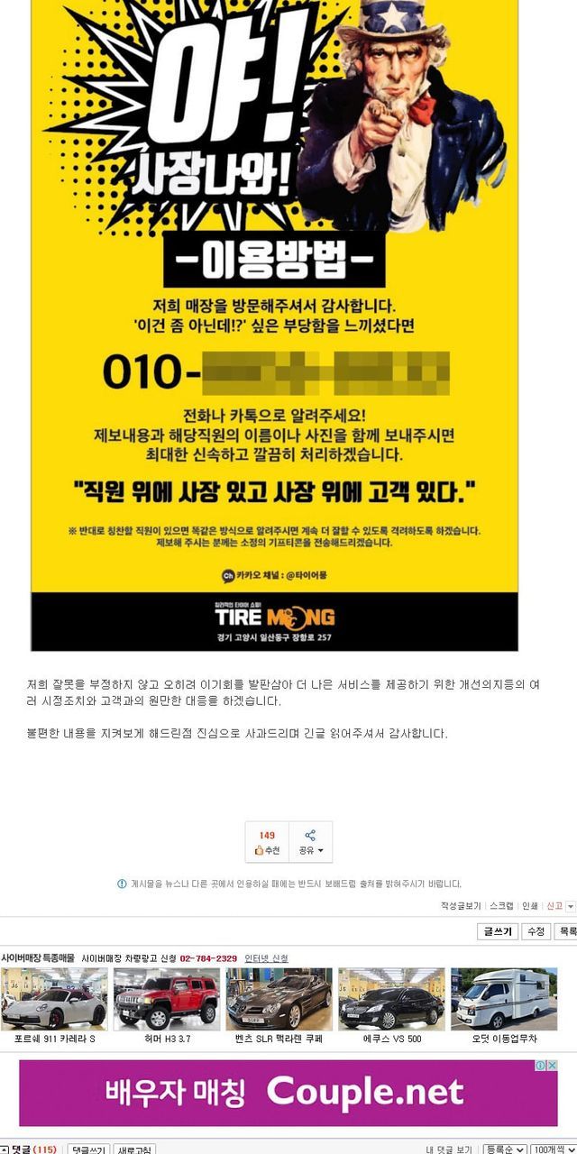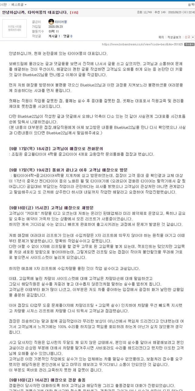 아래 보배 타이어x 사건 최신 feat . 사장의 댓글알바