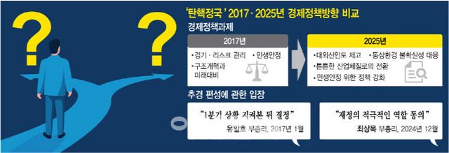 2016년 말 지금처럼 대통령 권한대행 체제에서 발표됐던 ‘2017년 경방’은 불과 반년 뒤에 문재인 정부가 출범하면서 사실상 폐기 수순을 밟았다. 이번에도 만일 윤 대통령 탄핵안이 헌재에서 인용된다면 내년 상반기 내 대선이 치러칠 수 있고 새 정권이 들어서면서 곧장 새 경제정책방향을 제시할 가능성이 크다.