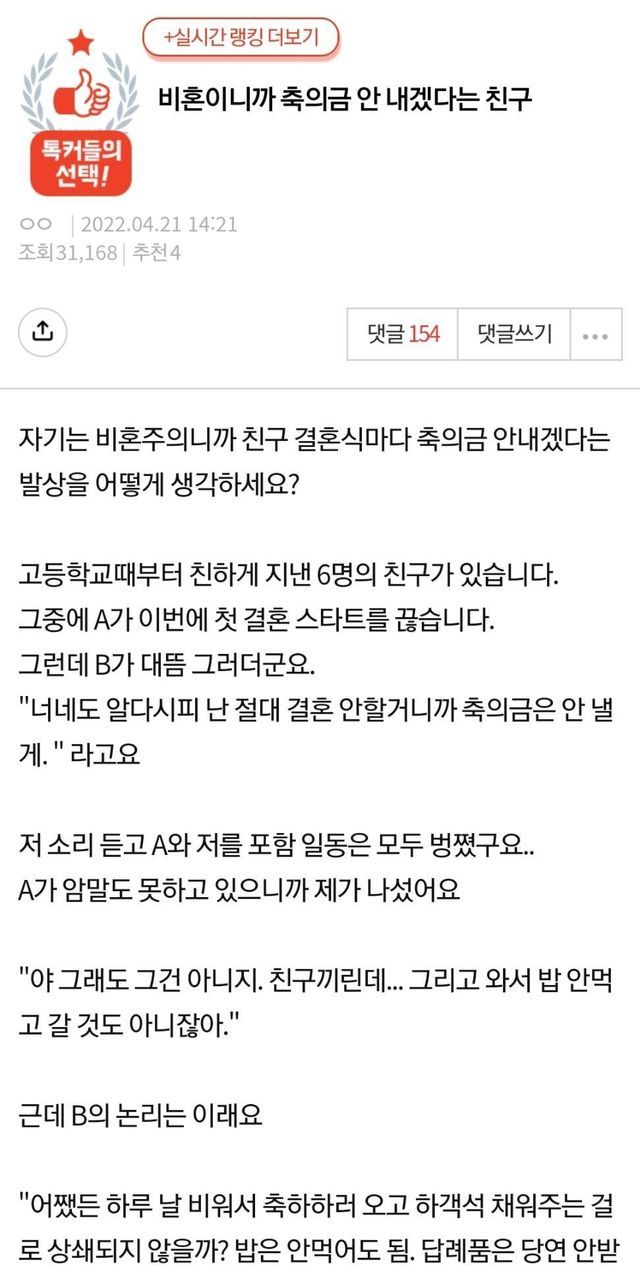 비혼이 점점 늘어나는 요즘세상에 논의해볼만한 주제인듯
