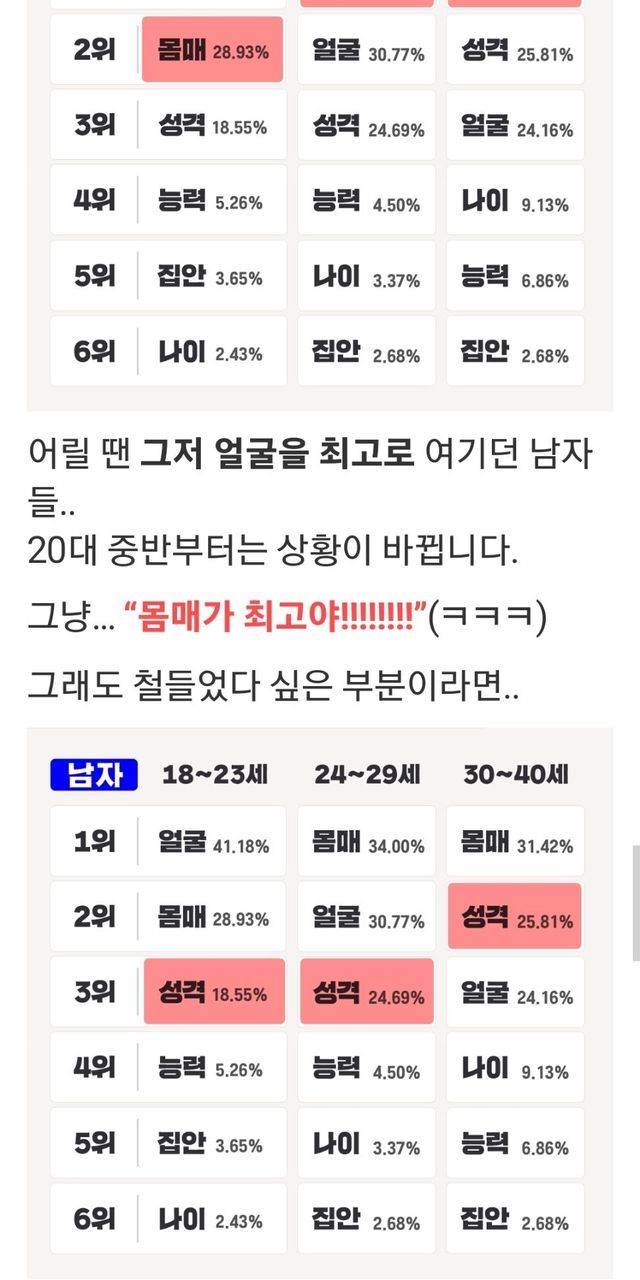 남녀 이성 볼 때 기준.