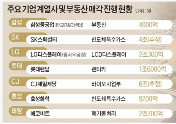 삼성그룹의 경우 삼성중공업이 이달 미래 사업에 대한 투자 재원을 마련하기 위해 판교 R&D 센터를 4000억원에 매각했다.