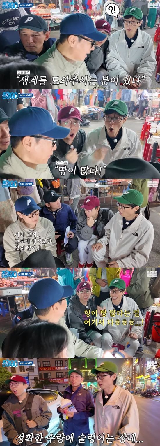 절친 유재석은 "나 소름 돋았다. 얼추 비슷하다"고 놀라워했다. 지석진은 "생각보다 (땅이) 많지 않다"며 당황한 듯 말까지 더듬어 웃음을 자아냈다.
