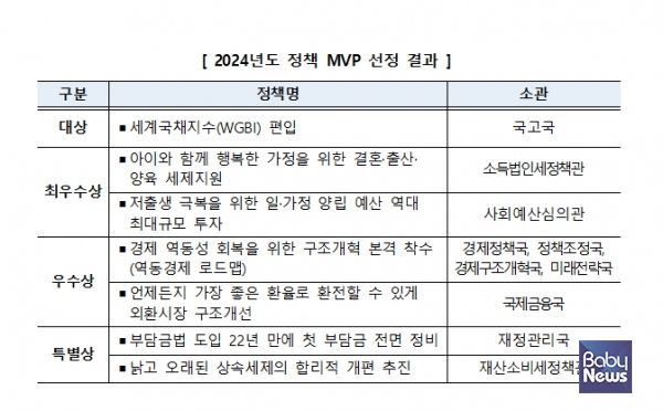 2024년도 정책 MVP 선정 결과. ⓒ기획재정부