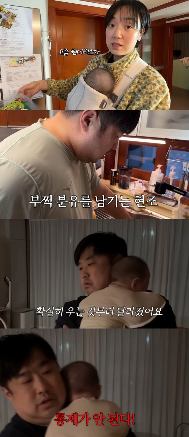 그런가 하면 아들의 새벽 수유를 담당한 강재준은 "진짜 잠을 못 잤다"며 피곤한 얼굴로 등장했고 "지금 약간 분태기(분유+권태기)가 온 것 같다. 분유를 남긴다. 그래서 1~2시간 뒤에 다시 배고파하는데 그때 먹이면 또 안 먹는다. 설거지할 시간도 없어서 그대로 남아있다"고 덧붙였다.