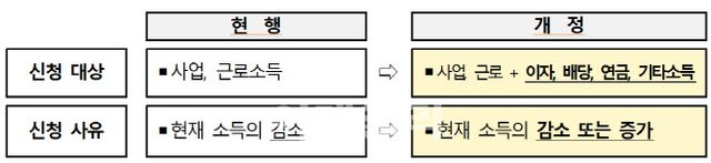 ‘소득 정산제도’는 현재 시점의 소득을 기준으로 건강보험료를 납부할 수 있도록 2022년 9월부터 도입, 운영 중인 제도다. 이번 개정으로 조정·정산의 대상이 되는 소득은 사업, 근로소득 2종에서 이자, 배당, 연금, 기타소득까지 총 6종으로 확대되고, 전년보다 현재 시점의 소득이 ‘감소’한 경우뿐만 아니라 ‘증가’한 경우에도 조정·정산 신청이 가능하게 된다. 폐업이나 휴업 사실, 소득금액 감소, 퇴직(해촉)증명원을 제출하면 줄어든 소득을 반영해 보험료를 깎아 주는 식이다.