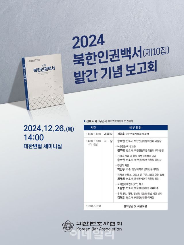 대한변협은 북한 주민의 인권실태를 널리 알려 북한 주민들의 인권을 보호한다는 취지에서 2006년부터 격년으로 북한인권백서를 발간하고 있다. 이번 보고회는 지난 10월 발간한 2024 북한인권백서(제10집) 주요 내용을 살펴보는 의미에서 마련됐다.