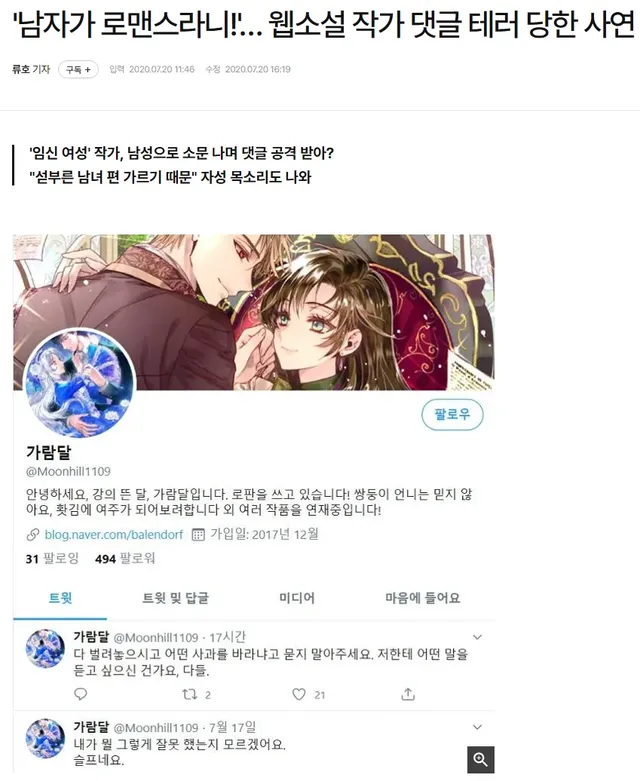 지들끼리 믿고 작품 테러했는데 알고보니 여자 작가.
