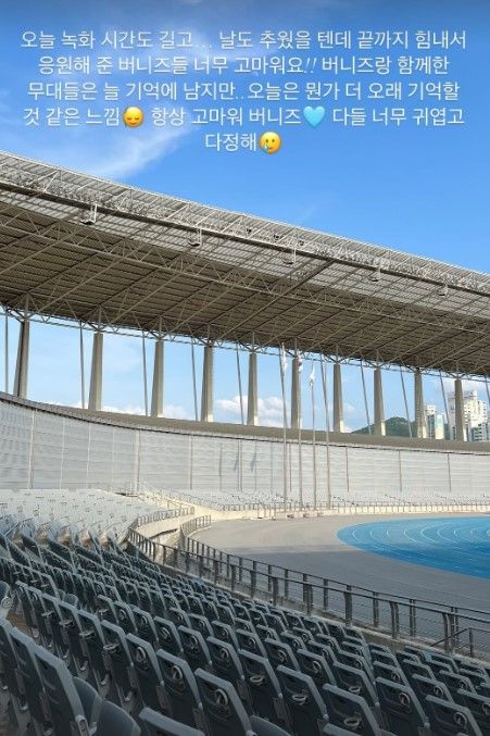 이 가운데 민지가 사진 속 숨겨둔 또 다른 메시지가 눈길을 끈다. 겉보기엔 평범한 공연장의 전경처럼 보이지만, 민지는 공연장 철조물 사이 "나는 나중에 편하게 울 수 있을 때 울게"라고 적었다.