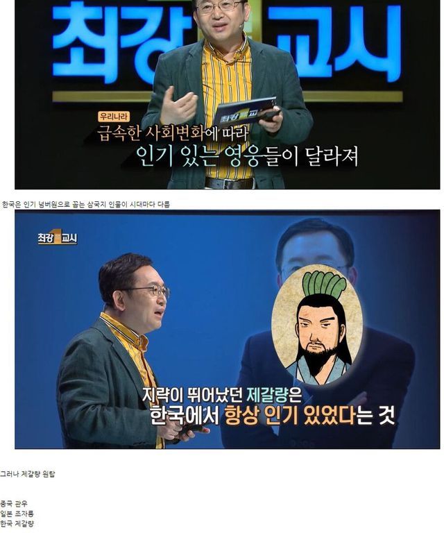 한중일에서 각각 선호하는 삼국지 등장인물.