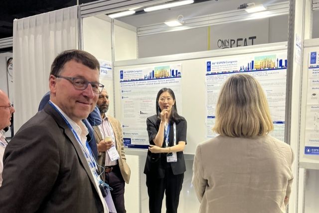 이문희 한미약품 GM임상팀 이사(가운데)가 9월 이탈리아 밀라노에서 열린 유럽임상영양대사학회(ESPEN)에서 단장증후군 치료제로 개발 중인 소네페글루타이드의 임상 1상 약동학 결과를 발표하고 있다. 사진=한미약품 제공
