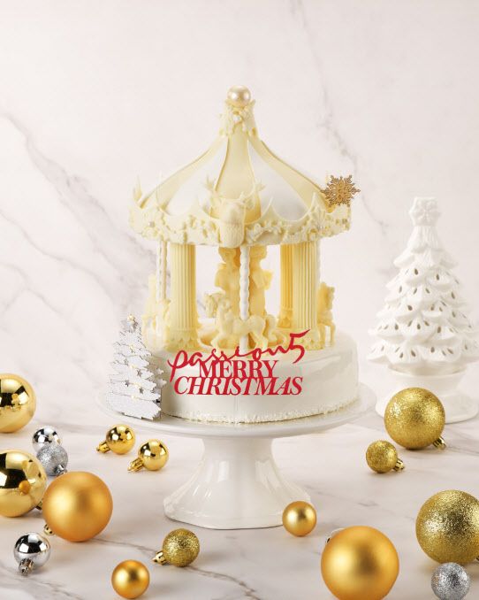 패션5와 파리크라상의 크리스마스 케이크는 프리미엄 브랜드답게 예술 작품에 가까운 비주얼을 자랑한다. 우선 패션5의 ‘회전목마’는 파티셰의 손길을 거쳐 실제 회전목마 놀이기구를 연상케 할 정도로 정교하게 제작됐다. 반짝이는 글레이즈를 씌운 치즈 케이크 위에 비너스, 목마, 사슴 등을 초콜릿으로 장식했다. 스위치를 켜면 반짝반짝 불이 들어오는 트리 장식물도 포함되어 있어 파티 분위기를 연출하는데 제격이다. 크리스마스 당일까지 45개 한정 판매한다. 초콜릿 케이크 위로 대형 사이즈의 아기 곰 모양 입체 초콜릿을 올린 ‘산타베베’도 귀여운 디자인으로 눈길을 사로잡는다.