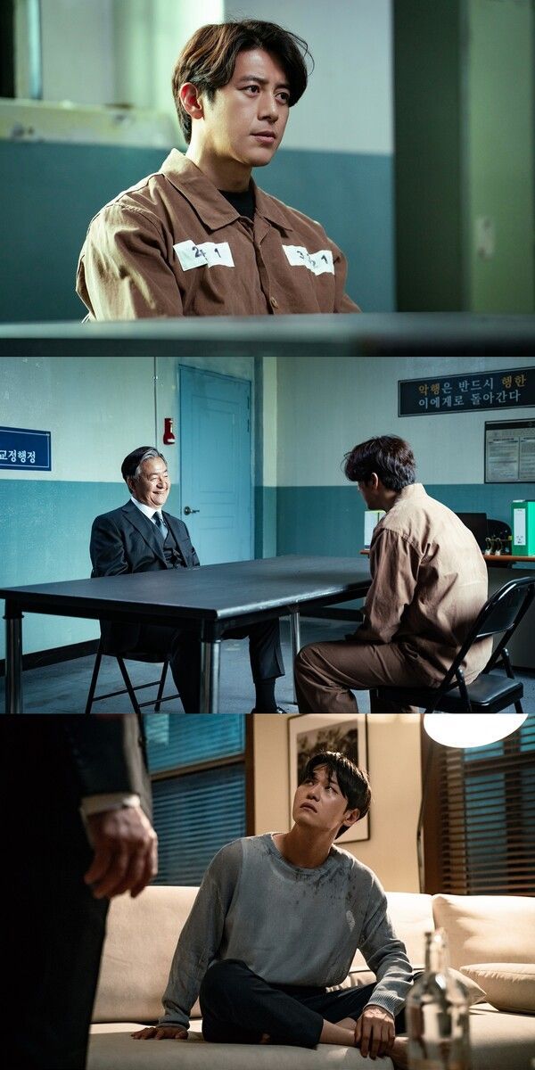 무엇보다 구치소에 방문한 지동만과 이한신의 팽팽한 대치가 돋보인다. 이한신을 찾아온 지동만은 뻔뻔한 웃음을 띠고 있는 반면, 이한신은 날카로운 눈빛으로 응수하며 극한의 긴장감을 자아낸다. 특히, 두 사람이 마주한 면회실 한쪽 벽면에 적힌 ‘악행은 반드시 행한 이에게로 돌아간다’는 문구는 의미심장함을 더하며, 죄를 짓고도 죗값을 다 치르지 않은 지동만이 과연 자신의 악행에 대한 대가를 받게 될지 궁금증을 유발한다.
