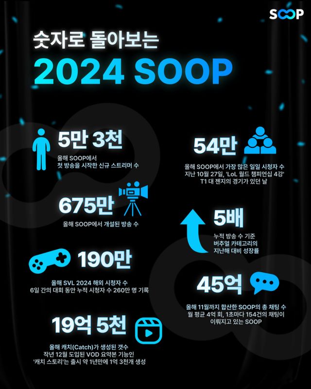 20년 만에 사명을 바꾸고 새출발을 알린 라이브 스트리밍 플랫폼 SOOP(옛 아프리카TV)이 지난 한 해 성과를 23일 공개했다.