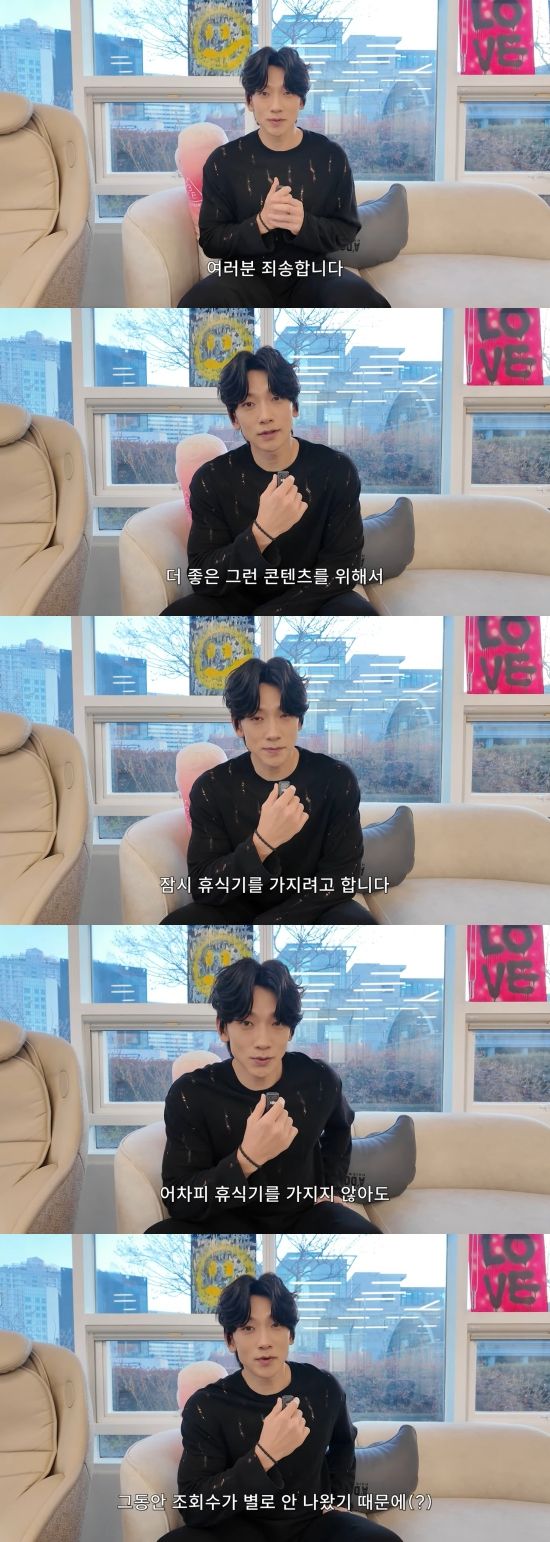 그는 "제가 어떤 소식을 전하기 위해서 이렇게 나왔다. 어떤 소식이냐. 저희가 조금 더 여러분들을 위해서 더 좋은 그런 콘텐츠를 위해서 잠시 휴식기를 가지려고 한다"고 전했다.