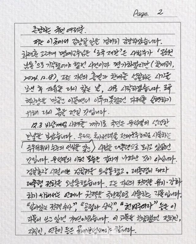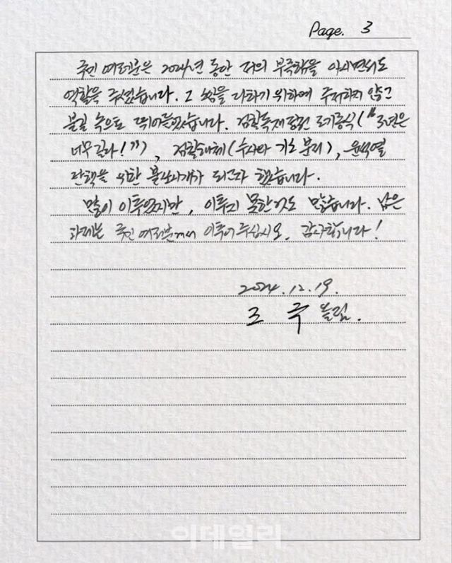 조국혁신당은 지난 19일 조 전 대표가 서울구치소에서 수기로 작성한 3쪽짜리 옥중서신을 이날 공개했다.