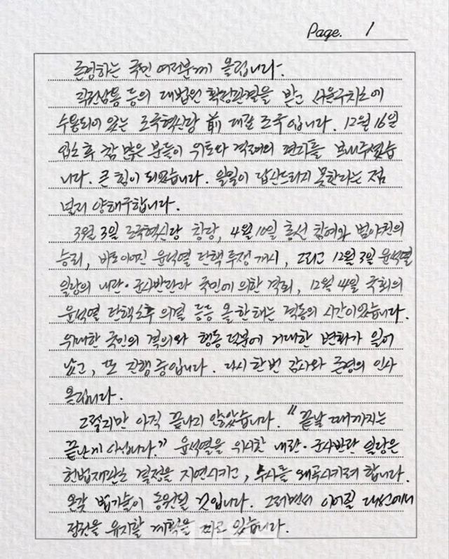 이어 “윤석열을 위시한 내란·군사반란 일당은 헌법재판관 결정을 지연시키고, 수사를 왜곡시키려 한다”면서 “온갖 법 기술이 동원될 것이다. 그러면서 이어질 대선에서 정권을 유지할 계획을 짜고 있다”고 했다.