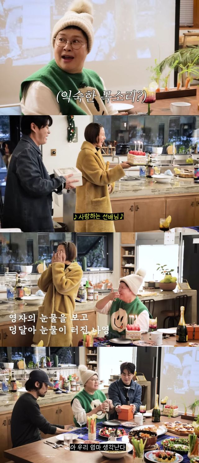 예상치 못한 이영자의 눈물에 결국 김나영도 눈물이 터졌지만, 금방 마음을 추스른 김나영은 송실장, 스태프들과 생일 축하 노래를 이어 불렀다.