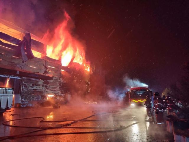 지난 21일 오전 2시 8분 경기 연천군 미산면에 위치한 한 드라마 세트장에서 화재가 발생했다. / 연천소방서 제공