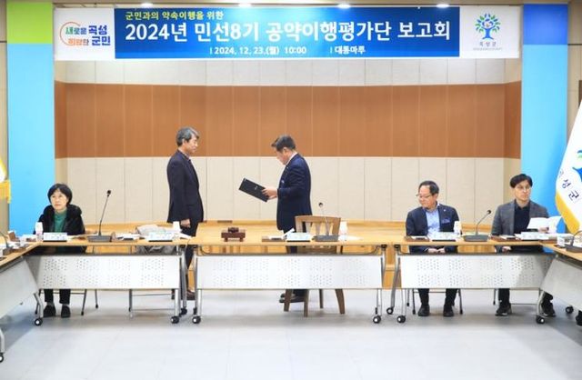 조상래 곡성군수는 “군민과의 약속을 함게 실현해 나가는 과정에 동참해 주신 평가단에 감사드린다.”며 “민선 8기의 군정 목표인 ‘새로운 곡성, 희망찬 군민’을 달성하기 위한 5대 분야 공약을 철저히 이행해 군민에게 자부심과 희망을 드리겠다.”고 말했다.