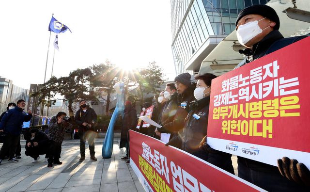 23일 노동계에 따르면 서울행정법원 행정6부는 지난 20일 전국민주노동조합총연맹 전국공공운수사회서비스노조 화물연대본부(이하 화물연대) 업무개시명령 조항인 ‘화물자동차 운수사업법(이하 화물자동차법) 14조 1항과 4항’에 관해 헌법재판소에 위헌법률심판 제청을 결정했다.