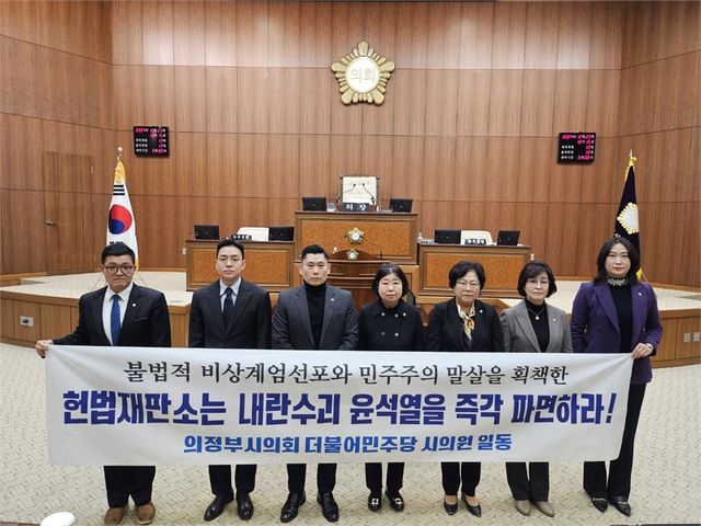 의정부시 민주당 의원들은 국가 경제와 국민의 삶에 막대한 피해를 끼친 윤석열 대통령의 내란 범죄 행위에 대해 강력하게 처벌을 요구한다.