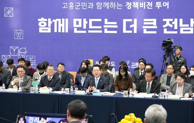 전라남도는 23일 오후 고흥 반다비체육센터에서 김영록 지사, 공영민 고흥군수, 송형곤·박선준 전남도의회 의원, 류제동 고흥군의회 의장, 청년과 군민 등 100여 명이 참석한 가운데 ‘고흥군 정책비전투어’를 개최했다.