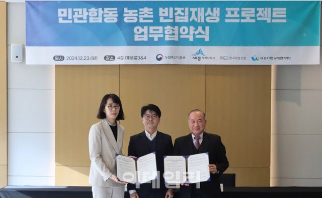 농식품부는 23일 이들 두 기관과 ‘농촌 빈집재생 프로젝트’ 추진을 위한 업무협약(MOU)를 체결했다.