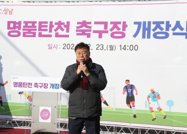 [와이뉴스] 신상진 성남시장은 23일 오후 2시 수진동 탄천변에서 열린 ‘명품탄천 축구장 개장식’에 참석했다.