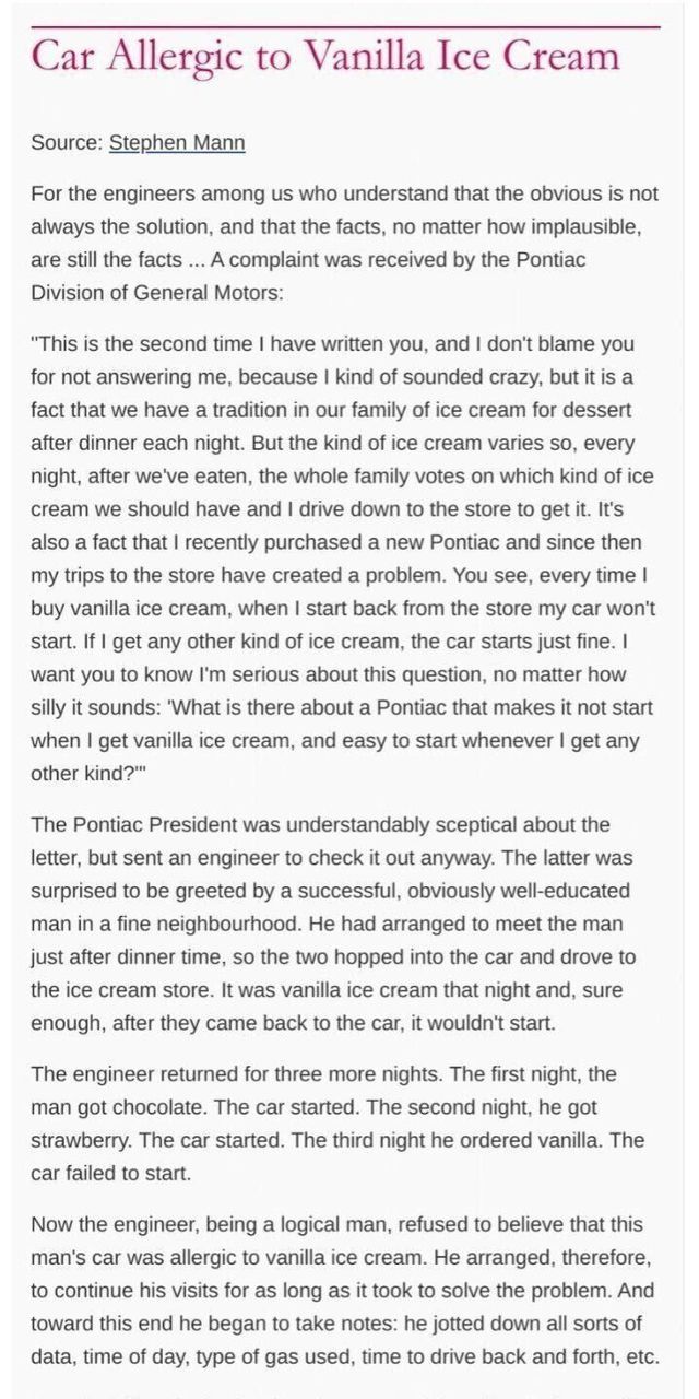 바닐라 아이스크림을 사면, 시동이 안 걸려요.