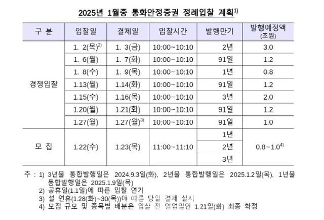 이 중 10조4000억원은 경쟁입찰 방식으로, 8000억~1조원은 모집 방식으로 각각 발행할 예정이다.
