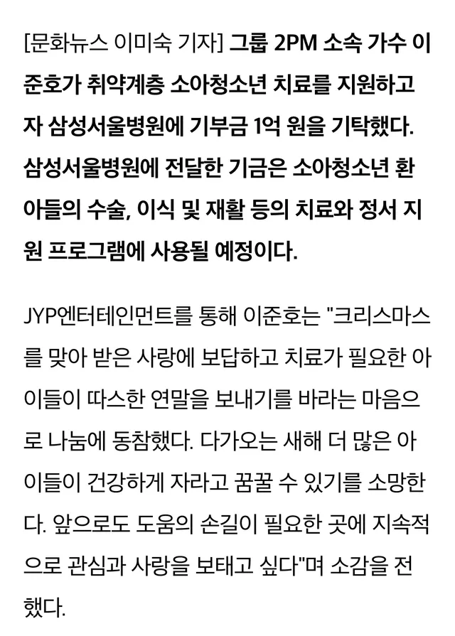 크리스마스 맞이해 취약계층 소아청소년 1억기부