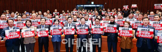 민주당은 내란관련 국정조사를 이달 31일 처리하는 것으로 결론 지었다고 밝혔다. 윤 대변인은 “국민의힘이 국조 지연전략으로 가는데 12월 31일날 국정조사안으로 처리하는 것으로 의장실과 이야기 했다”고 말했다.