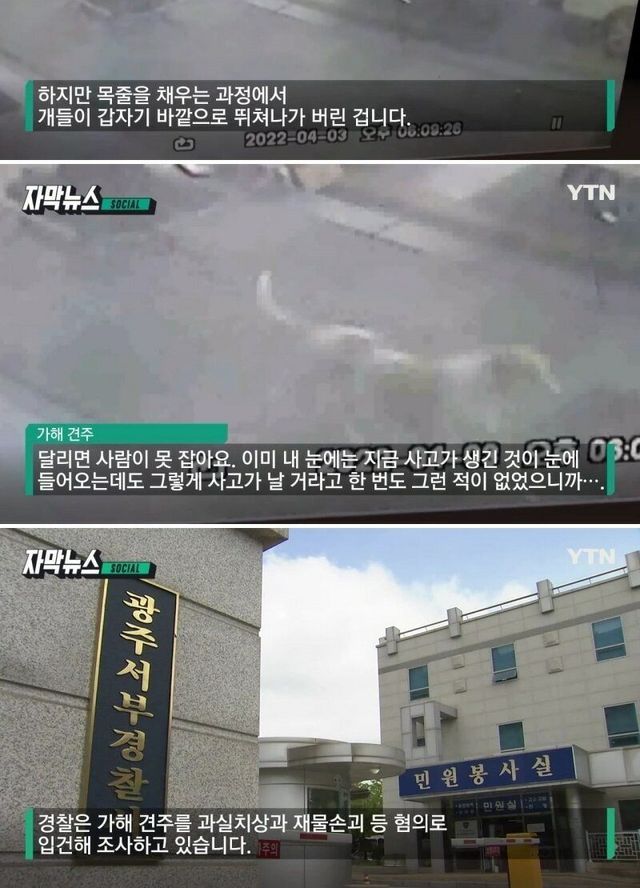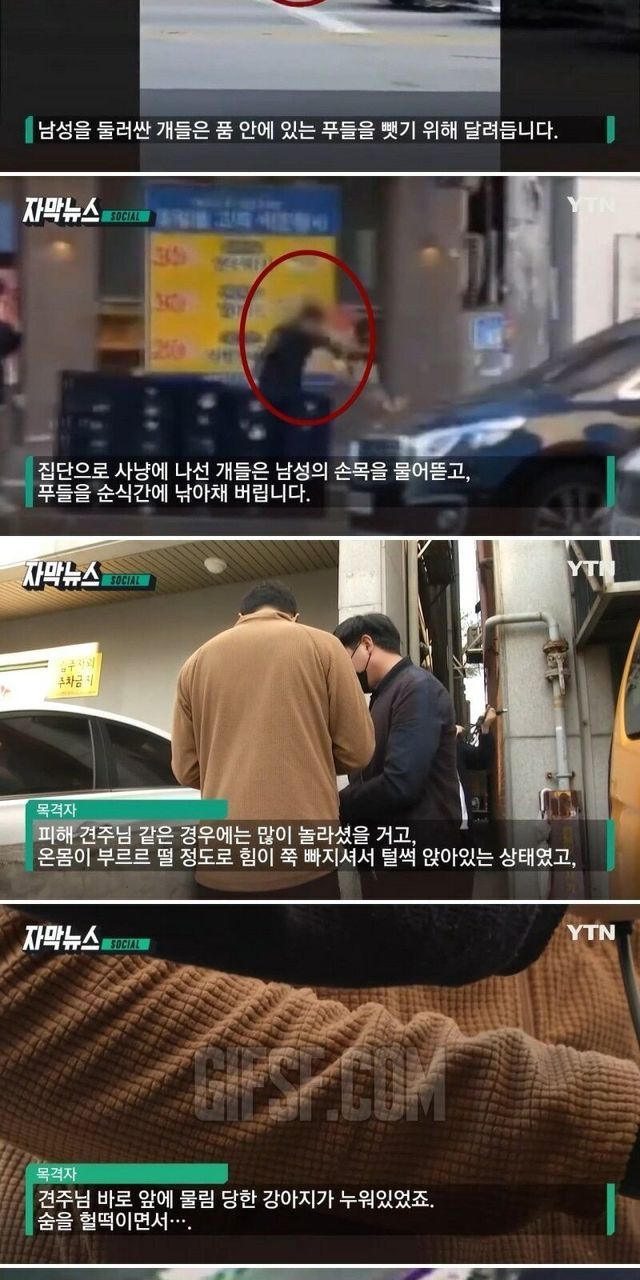 광주에서 입마개 없던 대형견 5마리 산책중인 푸들 물어죽여.