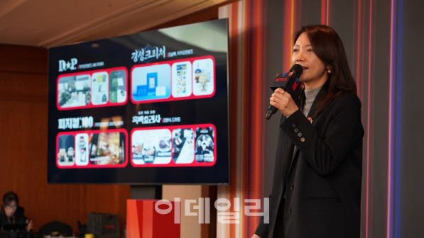 오소영 컨슈머 프로덕트 부문 시니어 매니저 ‘넷플릭스 콘텐츠의 일상 경험 확장 사례’를 소개했다. 오 매니저는 “오징어게임 시즌2는 한 편의 콘텐츠를 넘어 K문화를 즐길 수 있는 축제로 접근을 했다”며 “한국의 식음료, 뷰티, 패션 등 다양한 문화 영역에 있는 브랜드와 협업해 가능하면 해외에서도 성공적으로 유통할 수 있는 기회를 만들고자 했다”고 강조했다.