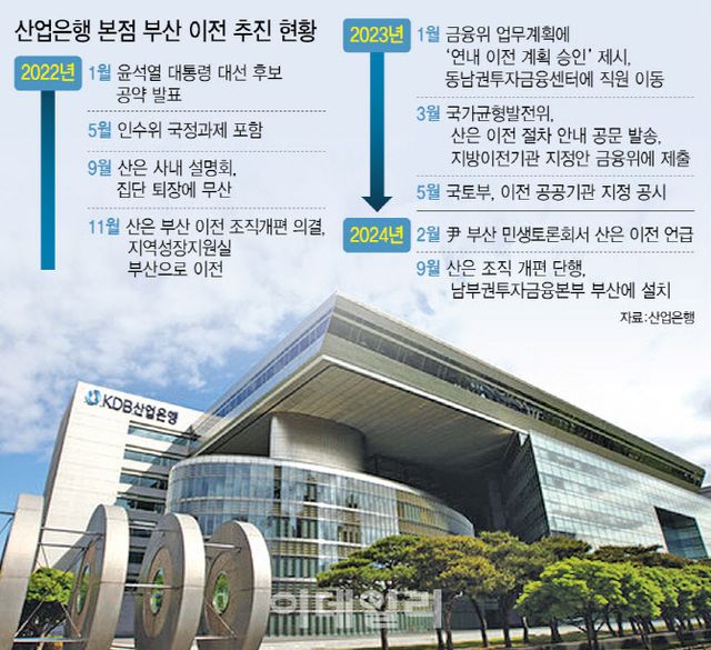 산은 본점 부산 이전은 윤 대통령의 대선 공약 중 하나로 ‘균형발전론’을 앞세워 강하게 추진해 온 대표적인 금융 정책이다. 그는 부산을 찾을 때마다 산업은행 이전을 실천하겠다고 약속했고 정부·여당은 지난 4월 총선과 10월 보궐선거에서도 산은 본점 부산 이전 공약을 내세웠다.