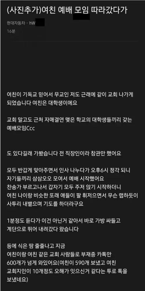 여자친구 예배 모임 따라갔다가...