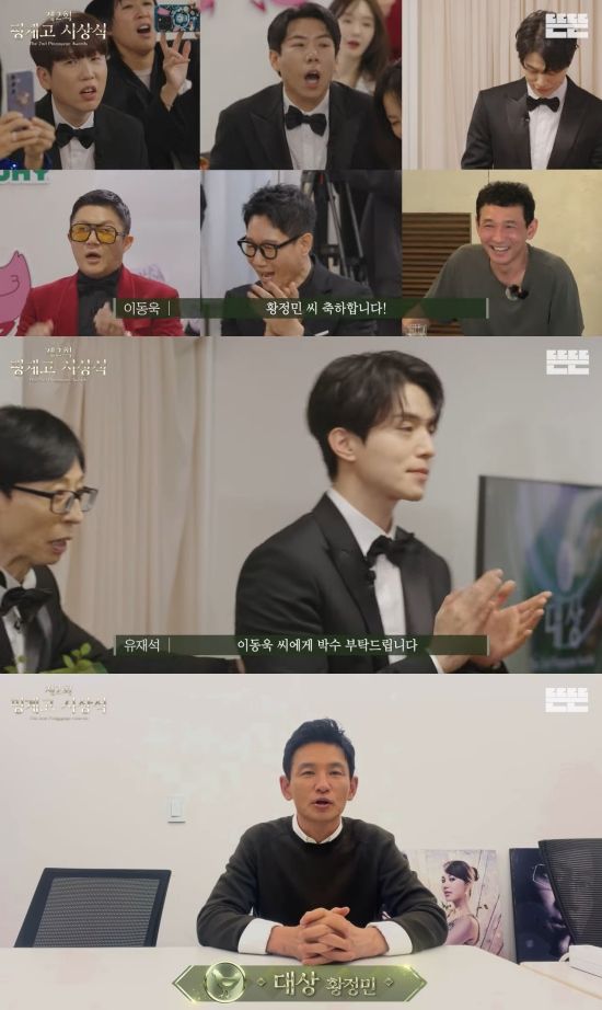 핑계고 시상식 영상이 공개되기 전날인 21일 진행된 '2024 KBS 연예대상'에서 유재석은 '싱크로유'로 올해의 예능인상을 받는 것에 만족해야했는데, 바로 다음날 황정민에게 대상을 안겨주면서 다시금 '대상 주는 남자'의 면모를 자랑했다.