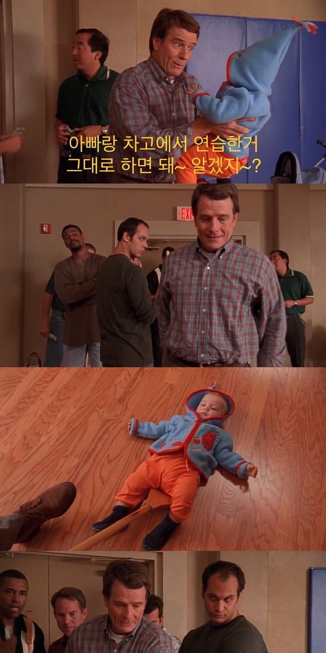아빠에게 아기의 스트레칭을 맡긴 결과.
