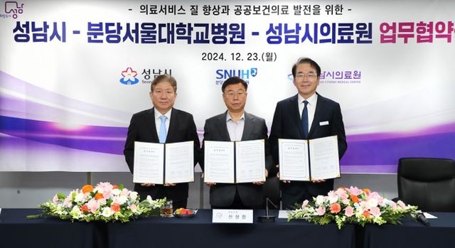 [파이낸셜경제=김예빈 기자] 성남시는 23일 공공보건의료 발전과 의료서비스 향상을 위해 분당서울대학교병원 및 성남시의료원과 진료 협력 협약을 체결했다.