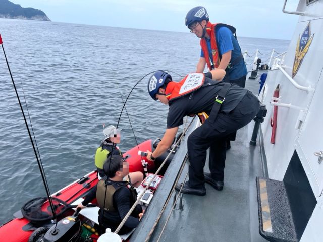| ▲ 8월 해양경찰관이 낚시어선 대상 음주측정을 진행하고 있다. |