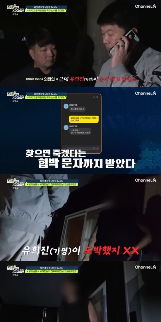 23일 방송된 채널A '탐정들의 영업비밀'에서는 '탐정 24시' 코너에서는 지난 회에 이어 갈매기 탐정단이 유명 탁구선수 유희진(가명)을 찾는 장면이 전파를 탔다.
