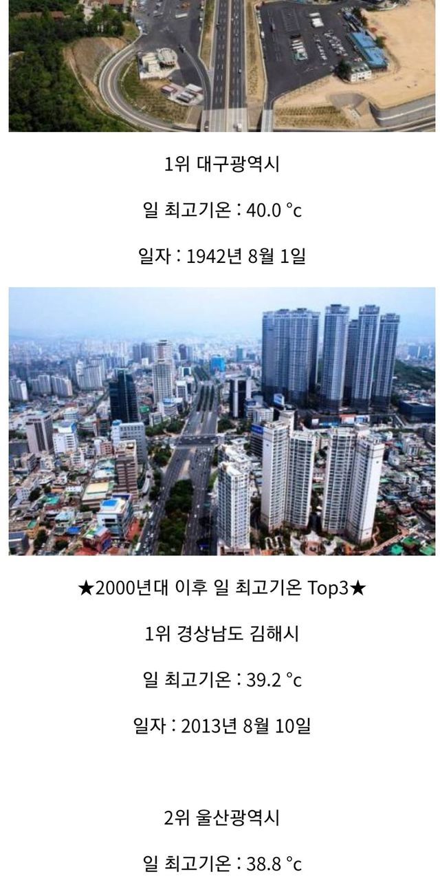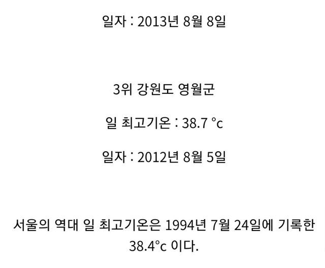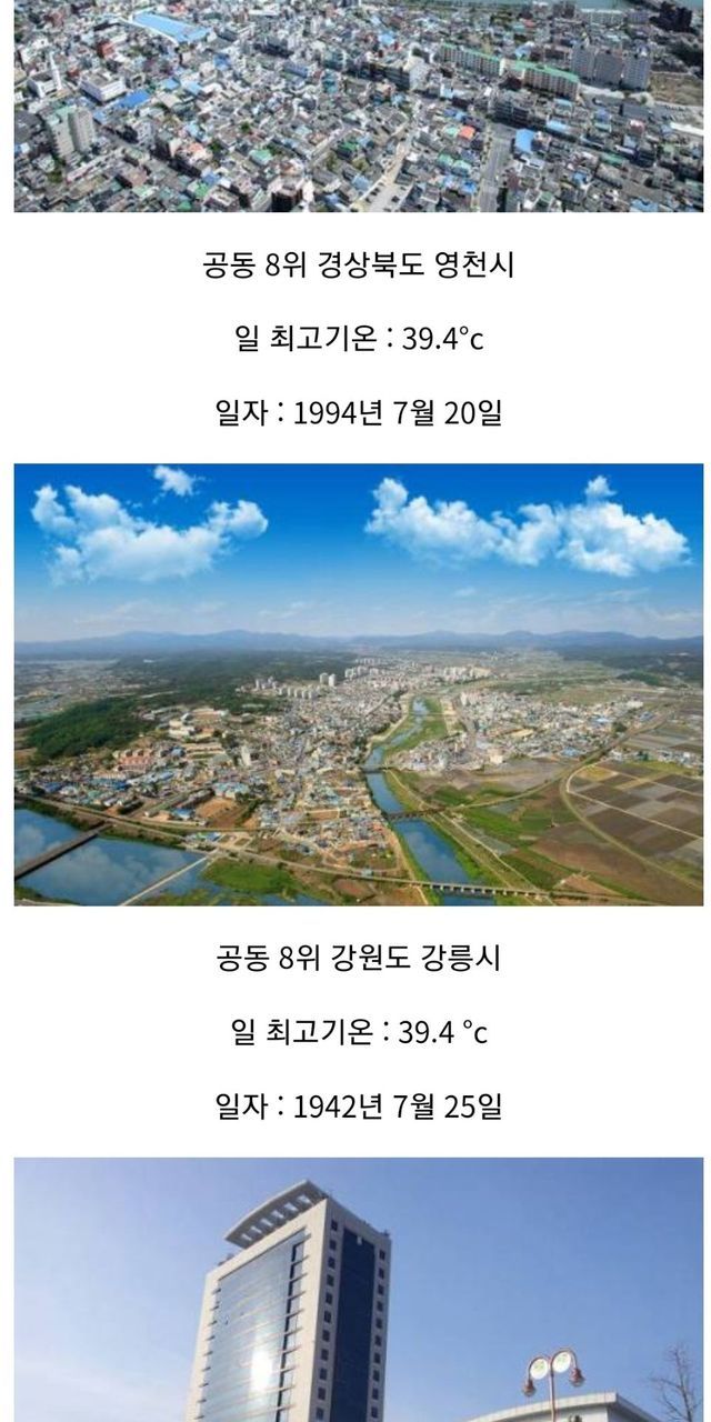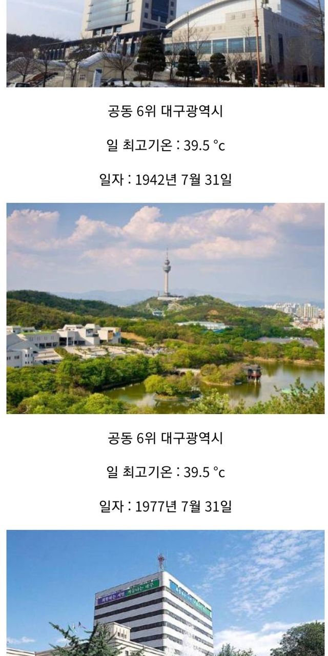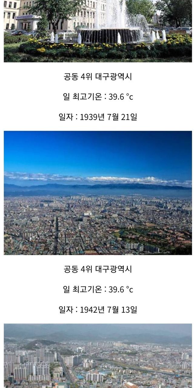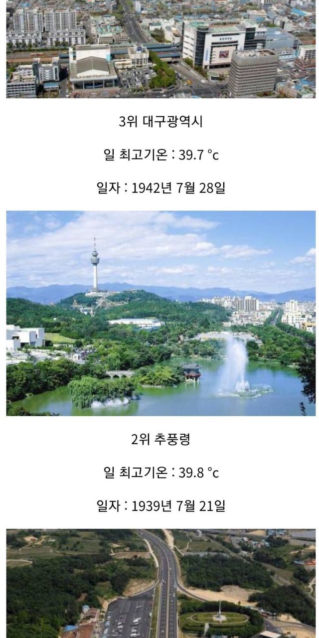 우리나라 역대 낮 최고기온이 높았던 지역.