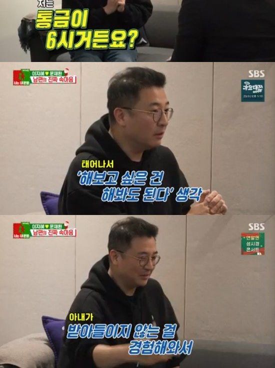 또 문재완은 "얘기를 해도 받아들여지지 않는 걸 경험을 해왔기 때문에 잘 말하지 않는다. 대부분의 의사 결정은 아내의 몫이다. 아이가 태어나면서부터는 아내 의견대로 많이 했다"고 전했다.