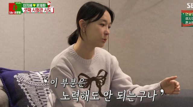 전문의가 ‘시술 실패가 상처였느냐’고 묻자 이지혜는 “그렇다기 보다는 노력해도 할 수 없는 일을 처음 맞딱뜨렸다. 방송도 가족도 다 노력하면 됐는데, 임신은 그렇지 않더라”고 털어놨다.