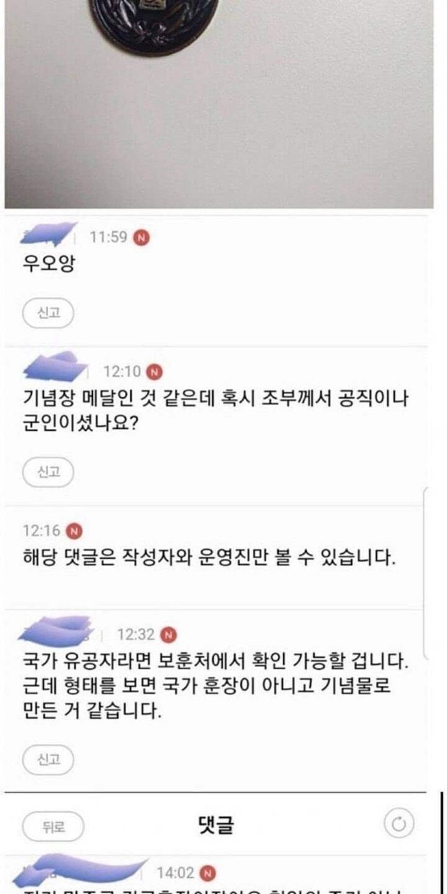 할아버지의 유품덕에 건국 유공자 가문임을 알게된 사람