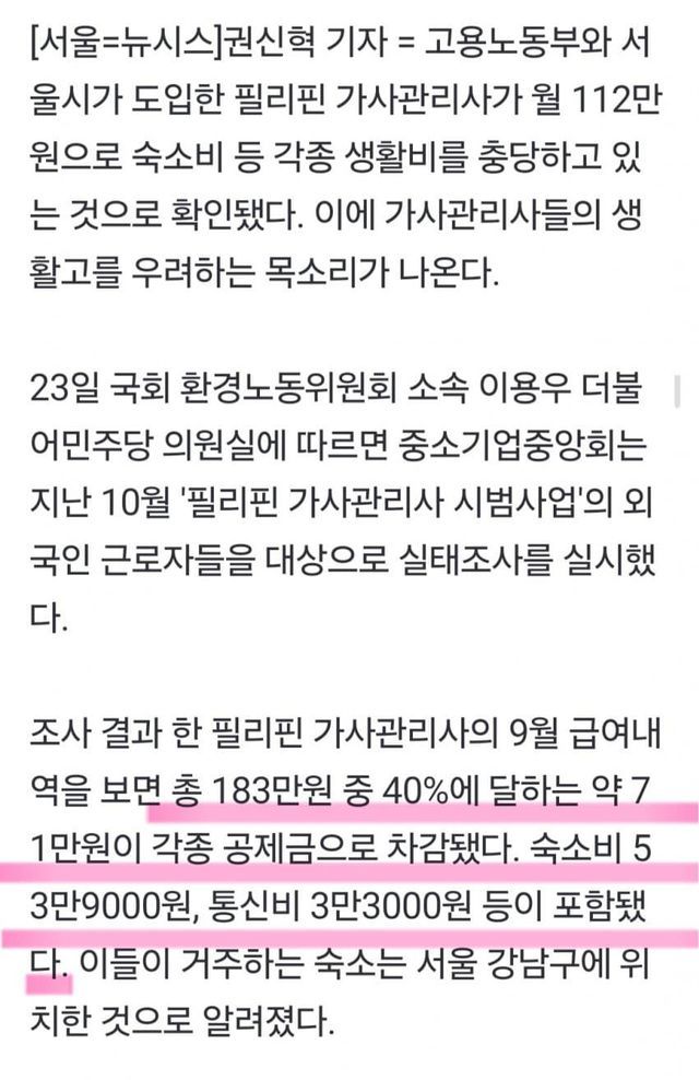 숙소비+통신비+4대보험+소득세로 71만원 차감