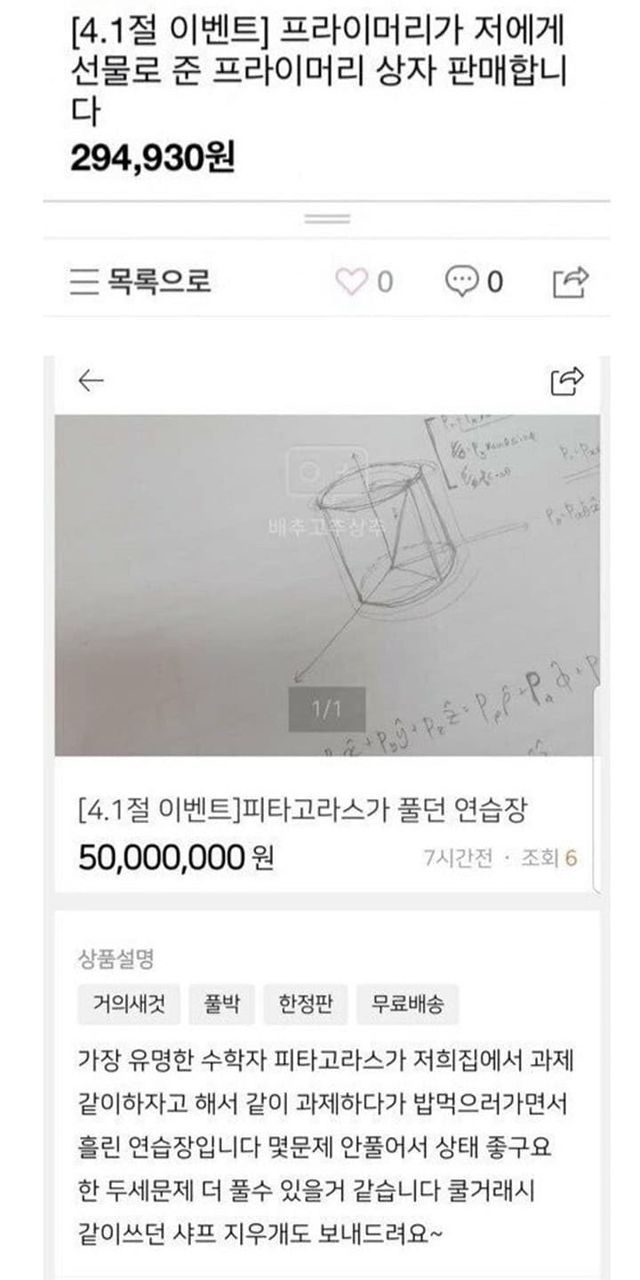 만우절에 올라온 중고물품들 ㅋㅋㅋ