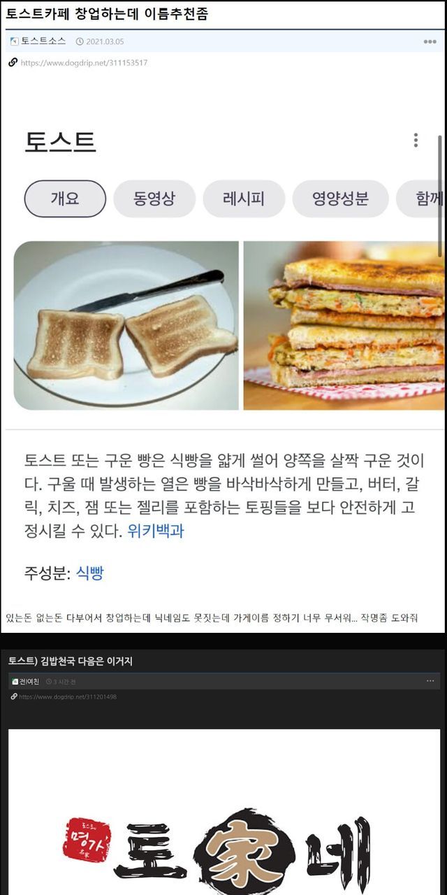 커뮤니티에서 가게 이름 추천받은 결과