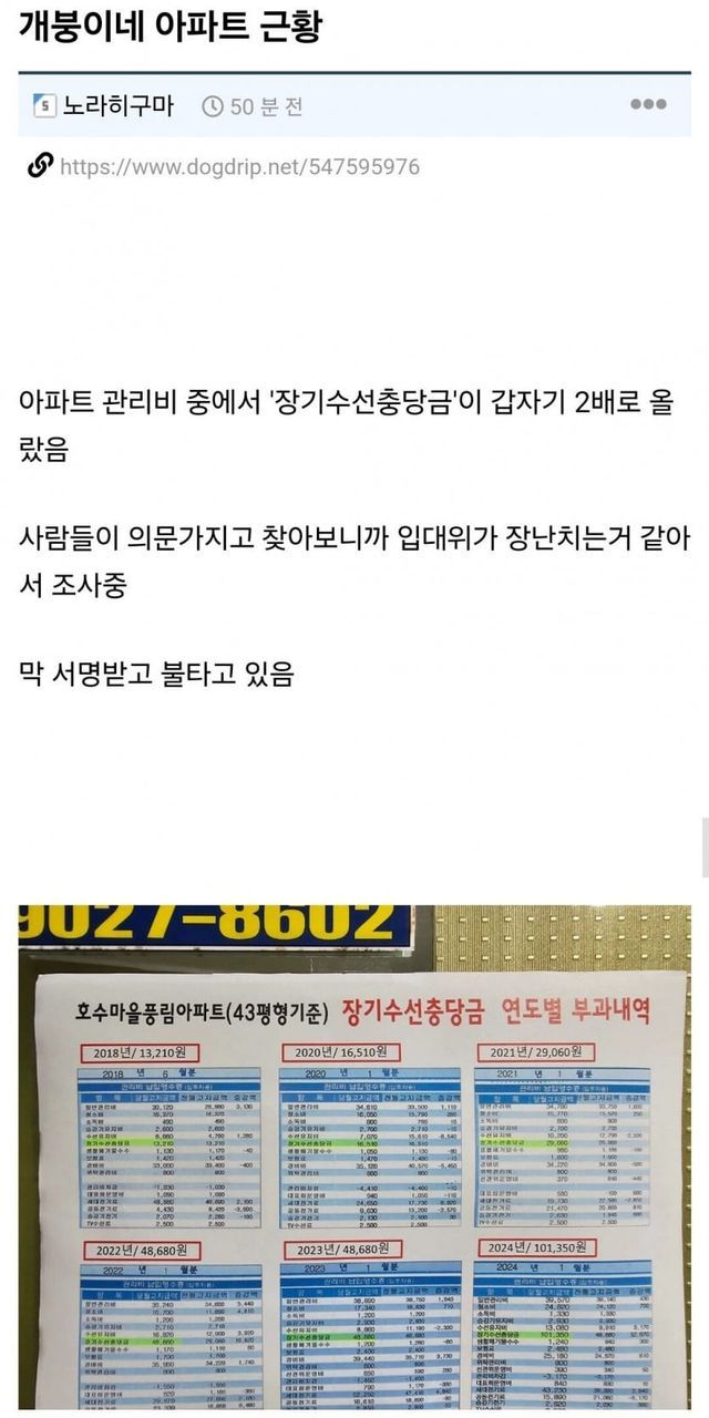 1000억 목표로 관리비가 2배로 인상된 아파트