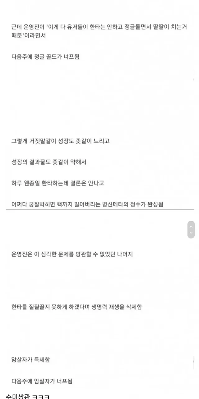 그냥 대가리없는 애들이 게임 관리하는 수준이라고 대차게 깜